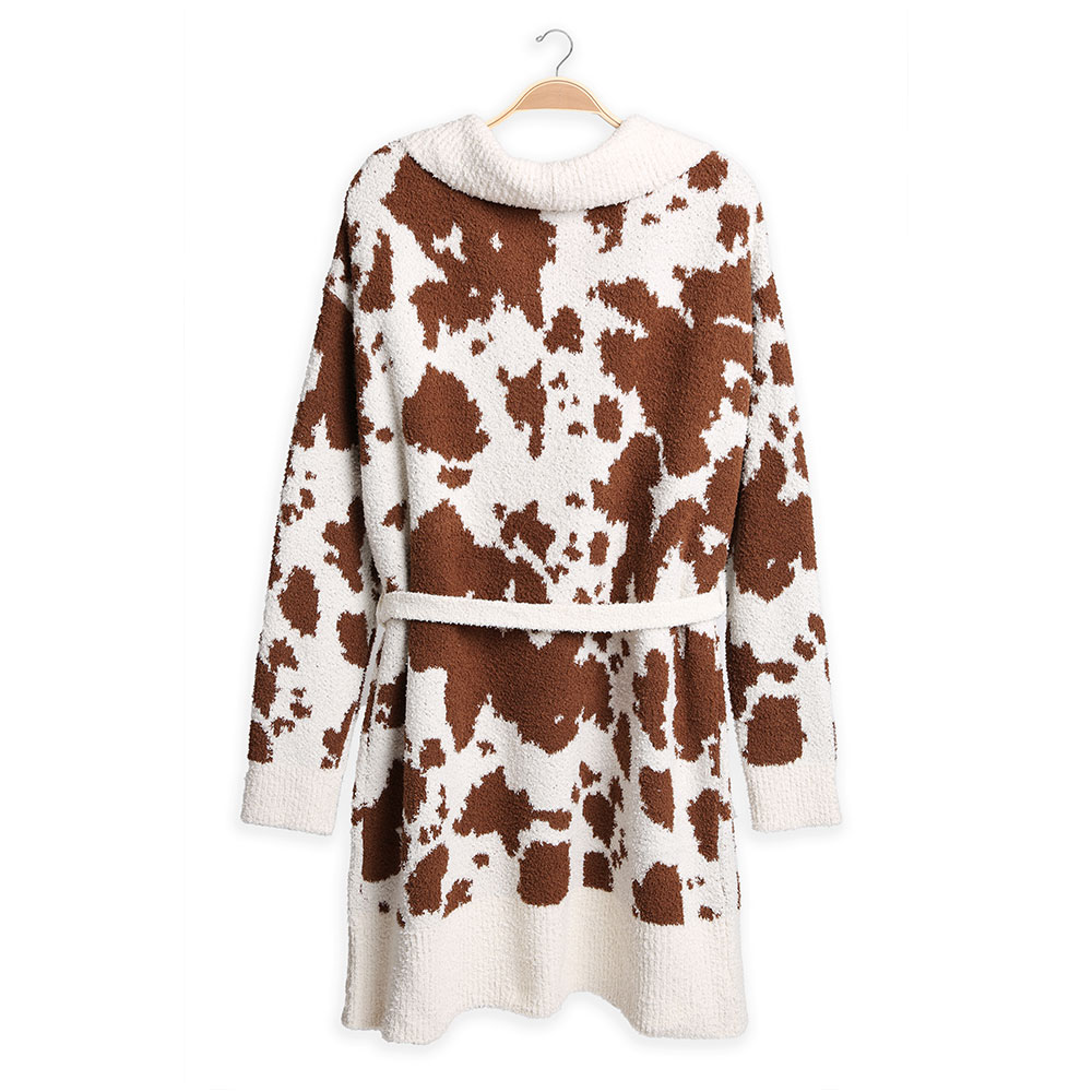 Details • Size : One Size • Material : 100% Poly Microfiber • Add comfort and style to your loungewear with this patterned belted cardigan robe. Designed with a relaxed fit, front pockets, and a wrap-around belt, it’s perfect for cozy days at home or casual layering, offering warmth, softness, and timeless appeal.