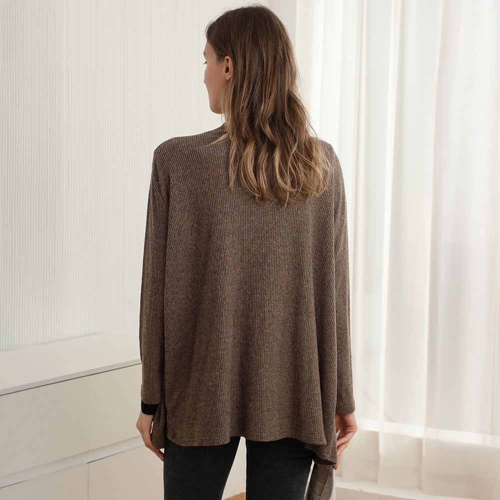 Solid Color Knit Ribbed Open Front Cardigan with Pockets