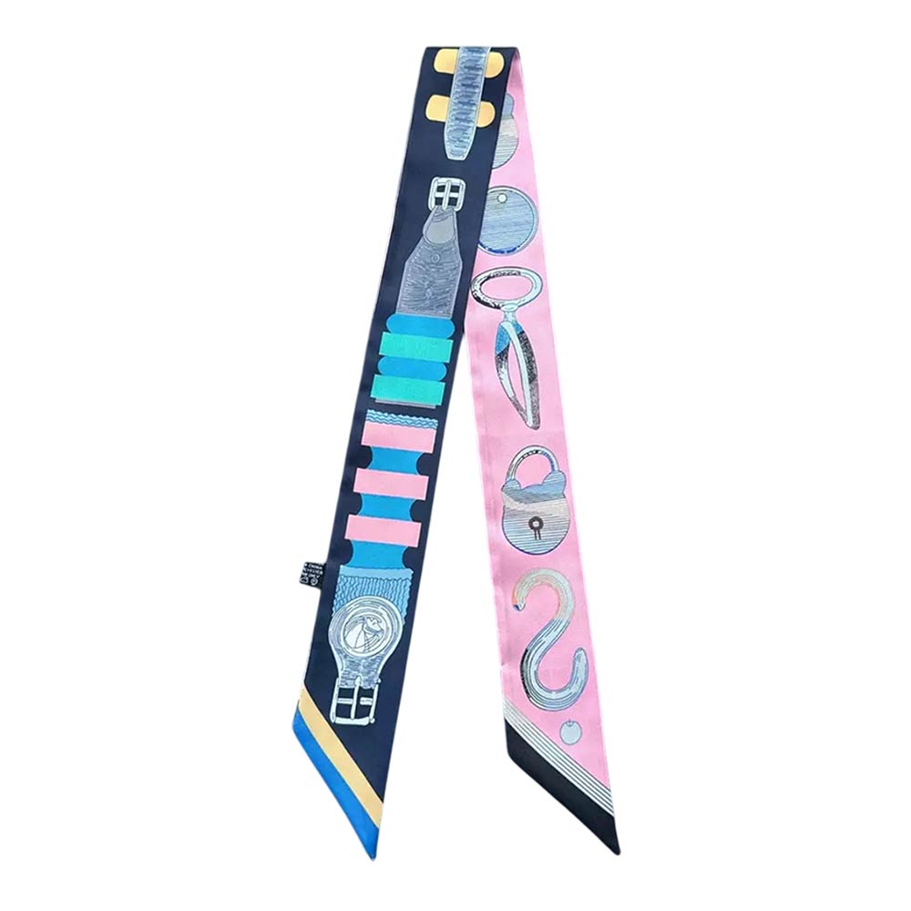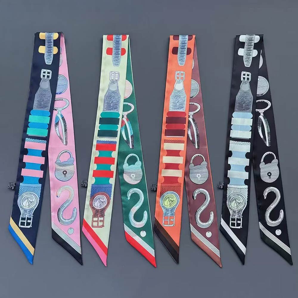 • Stylish skinny scarf featuring an accessory-inspired print with a sleek, elongated silhouette. Perfect for tying around the neck, wrist, handbag handle, or hair for versatile styling. Lightweight and easy to wear, ideal for everyday outfits, travel looks, gifting, and adding a polished accent to any ensemble.