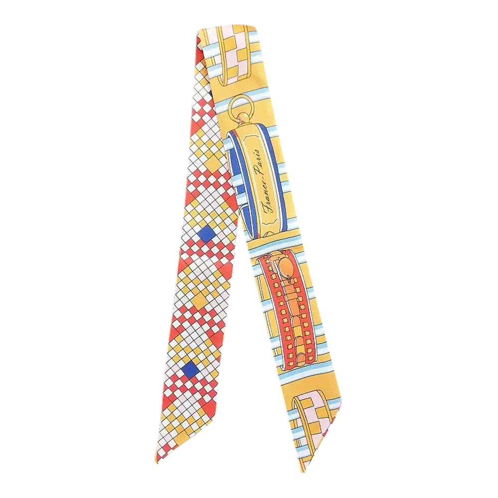 • Geometric skinny scarf designed for versatile styling on hair, handbags, ponytails, or wrists. The slim silhouette adds a polished accent to everyday outfits, travel looks, and boutique displays, making it an easy-to-style accessory for layering, gifting, and trend-forward collections.