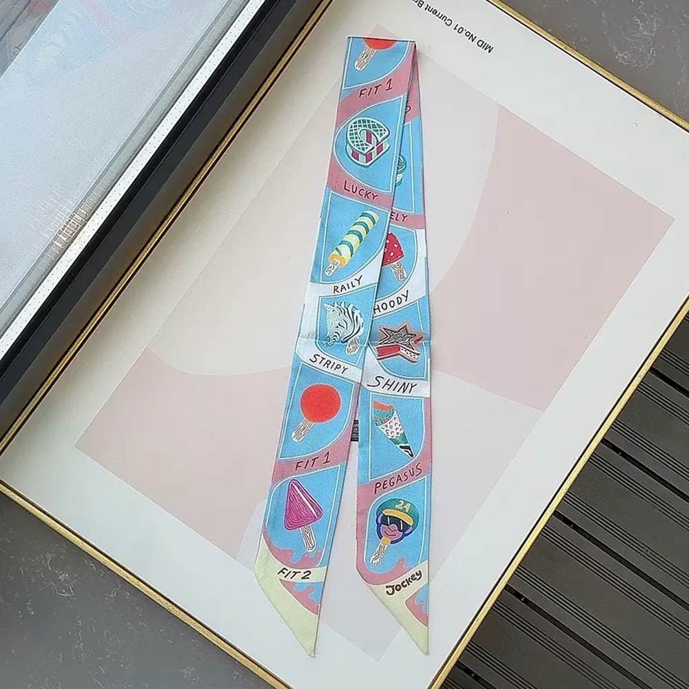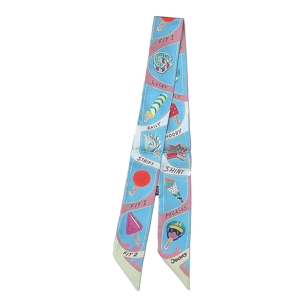 • Unique skinny scarf featuring a playful graphic icon print with an elongated twilly silhouette. Perfect for styling around the neck, wrist, hair, or handbag handle for versatile looks. Lightweight and easy to wear, ideal for everyday outfits, travel styling, gifting, and adding a fun, modern accent to any ensemble.
