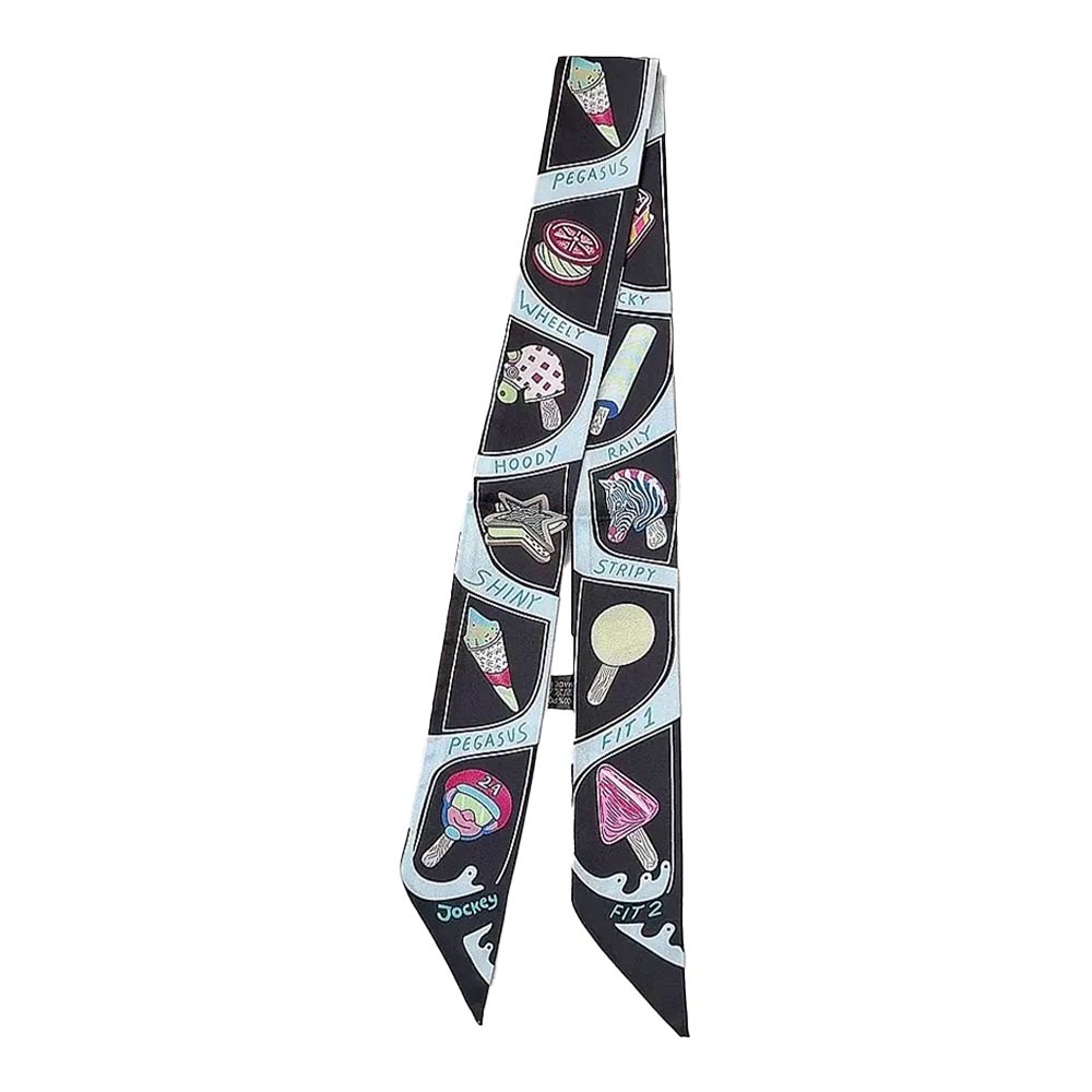 • Unique skinny scarf featuring a playful graphic icon print with an elongated twilly silhouette. Perfect for styling around the neck, wrist, hair, or handbag handle for versatile looks. Lightweight and easy to wear, ideal for everyday outfits, travel styling, gifting, and adding a fun, modern accent to any ensemble.