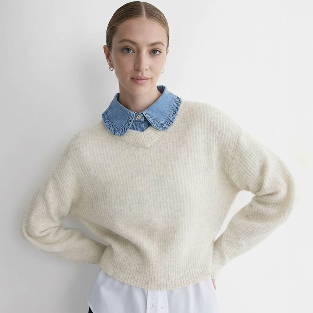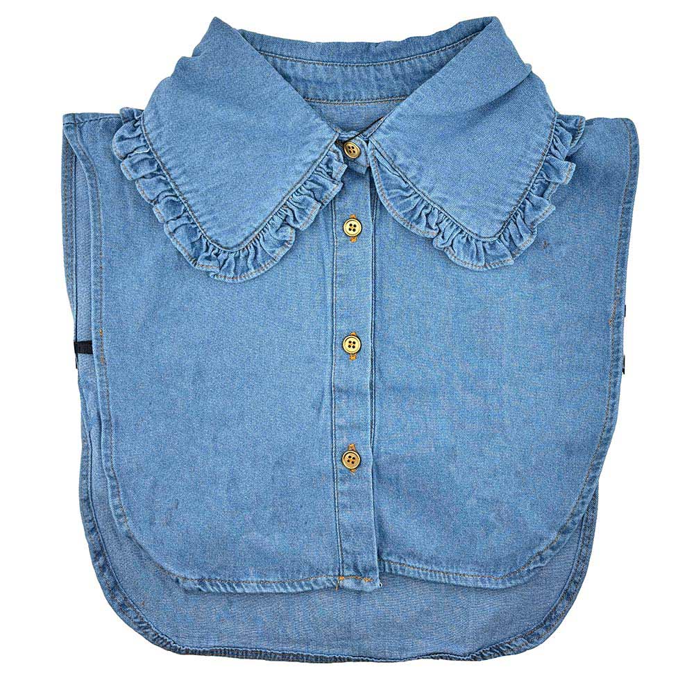 Details • Size : 13.5" X 15" • Material : 100% Polyester • Collar Only, Shirt Not Included • Detachable shirt collar featuring a soft ruffled edge and classic button-front design. Perfect for layering under sweaters, dresses, or jackets, it adds a polished, feminine touch without extra bulk. An easy styling accessory for refreshed everyday outfits, workwear looks, and modern layered fashion.