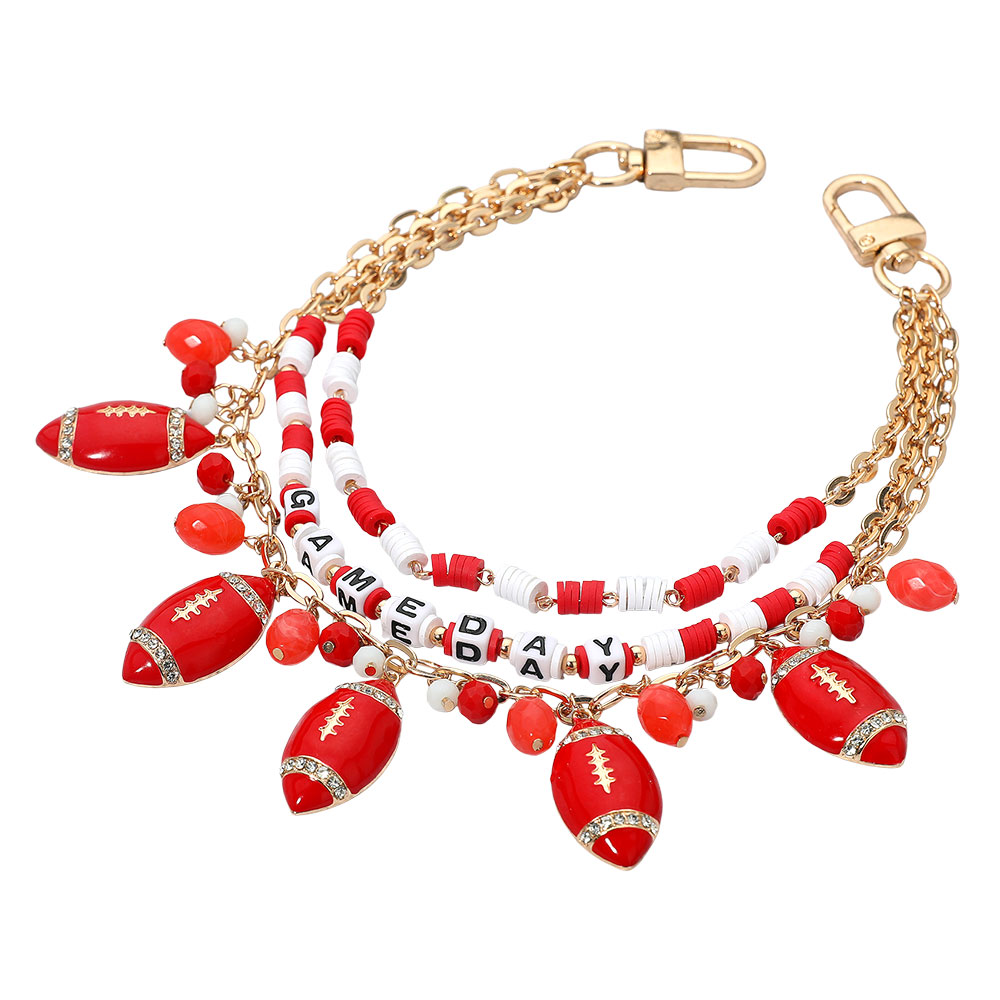 Football Charm Embellished GAMEDAY Heishi Beaded Layered Bag Charm