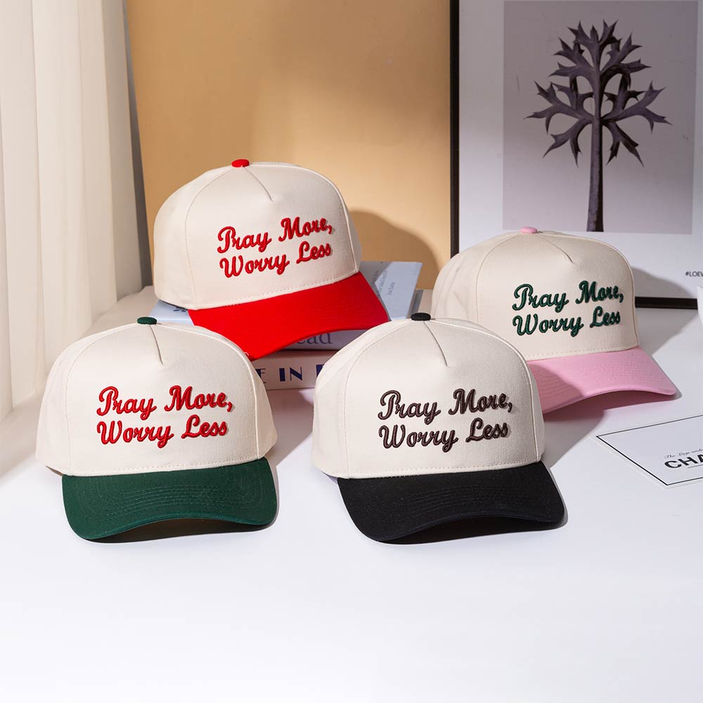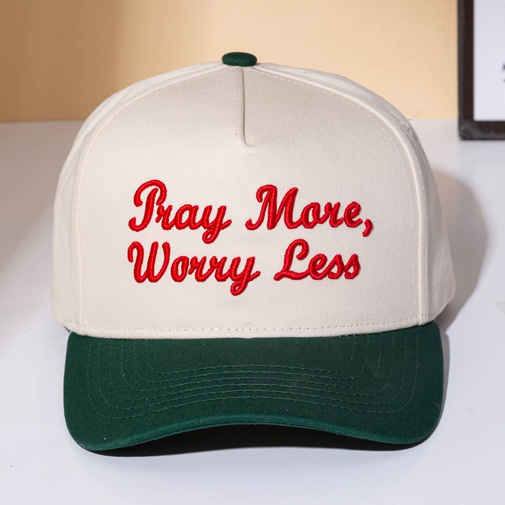 PRAY MORE WORRY LESS Message Embroidered Baseball Cap