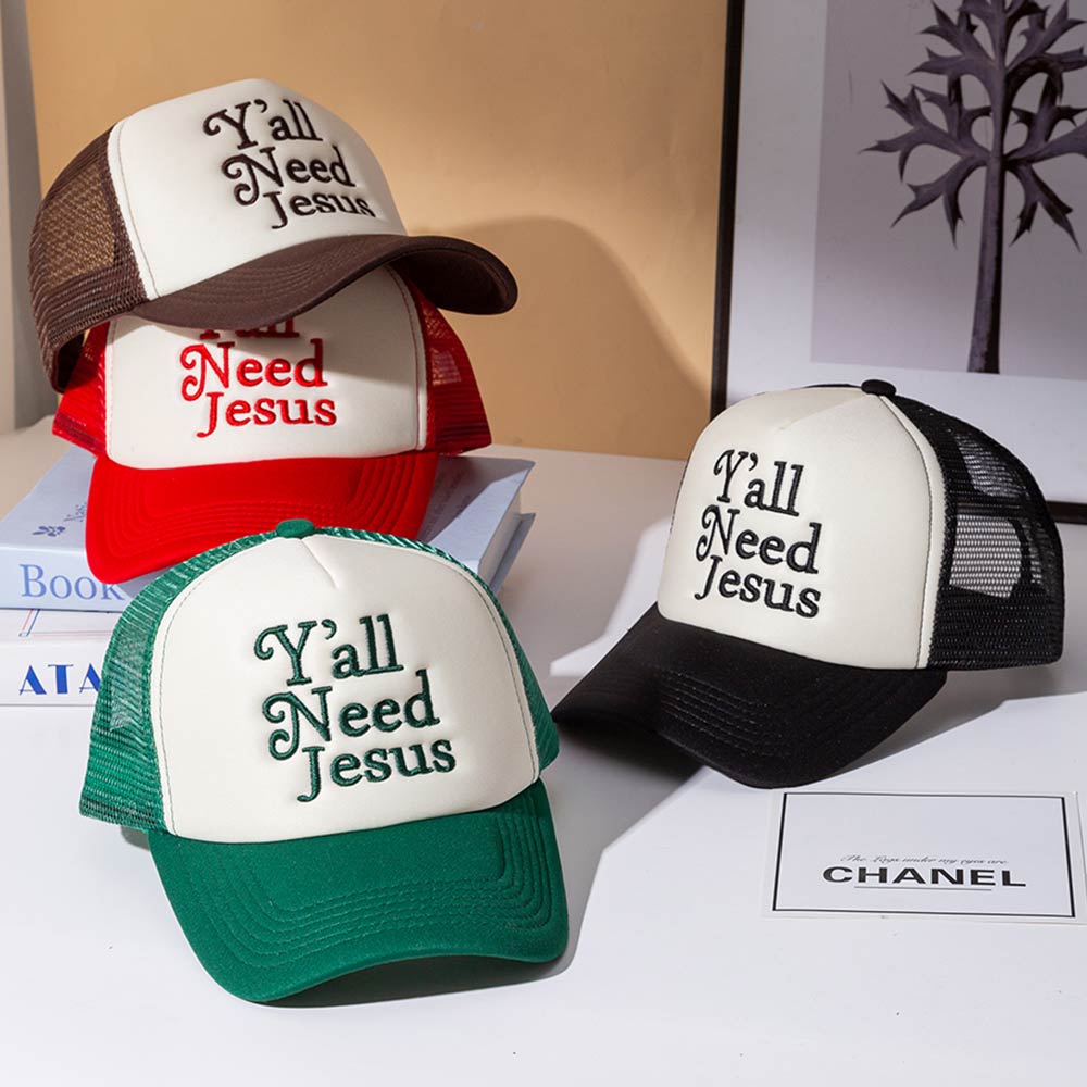 YALL NEED JESUS Message Embroidered Mesh Back Trucker Hat