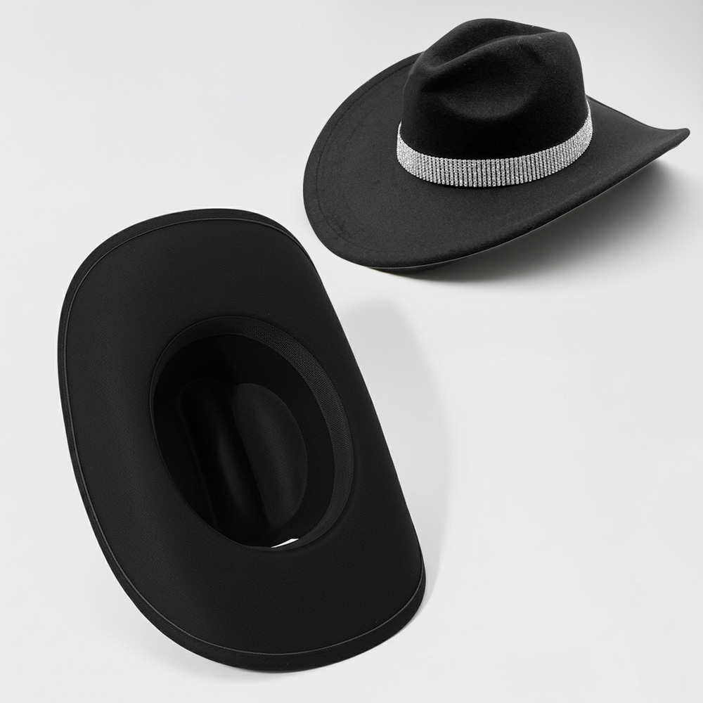 • Make a striking impression with this wide-brim statement cowboy fedora hat featuring a glimmering crystal band. Designed for timeless elegance and modern sophistication, it adds a touch of glamour to any outfit—perfect for upscale events, travel, or fashionable daywear.