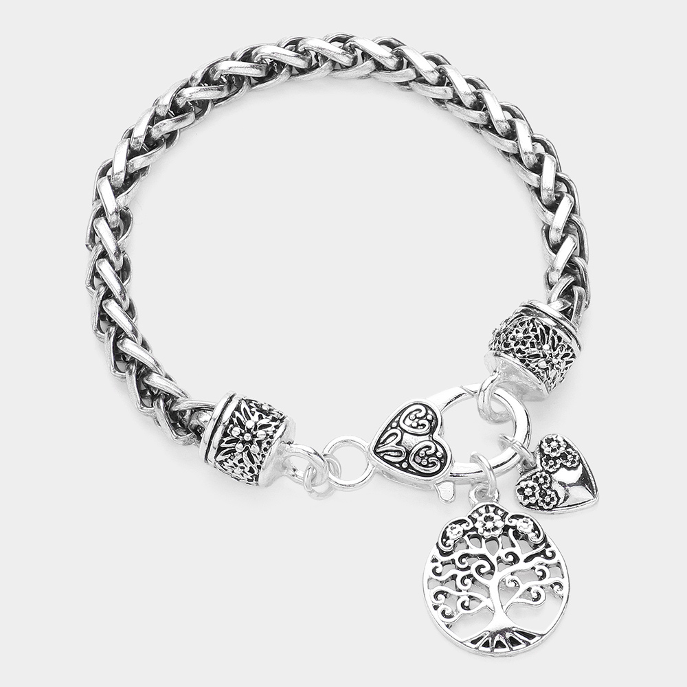 Antique Metal Tree Of Life Heart Charm Bracelet