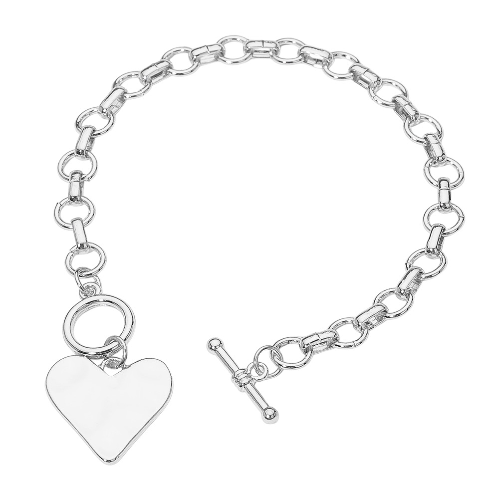 • Chic bracelet featuring a chain link design with a heart charm and toggle closure, adding a touch of playful elegance to any style. Perfect for layering or wearing solo, this accessory delivers a trendy and polished finish for everyday or special looks.