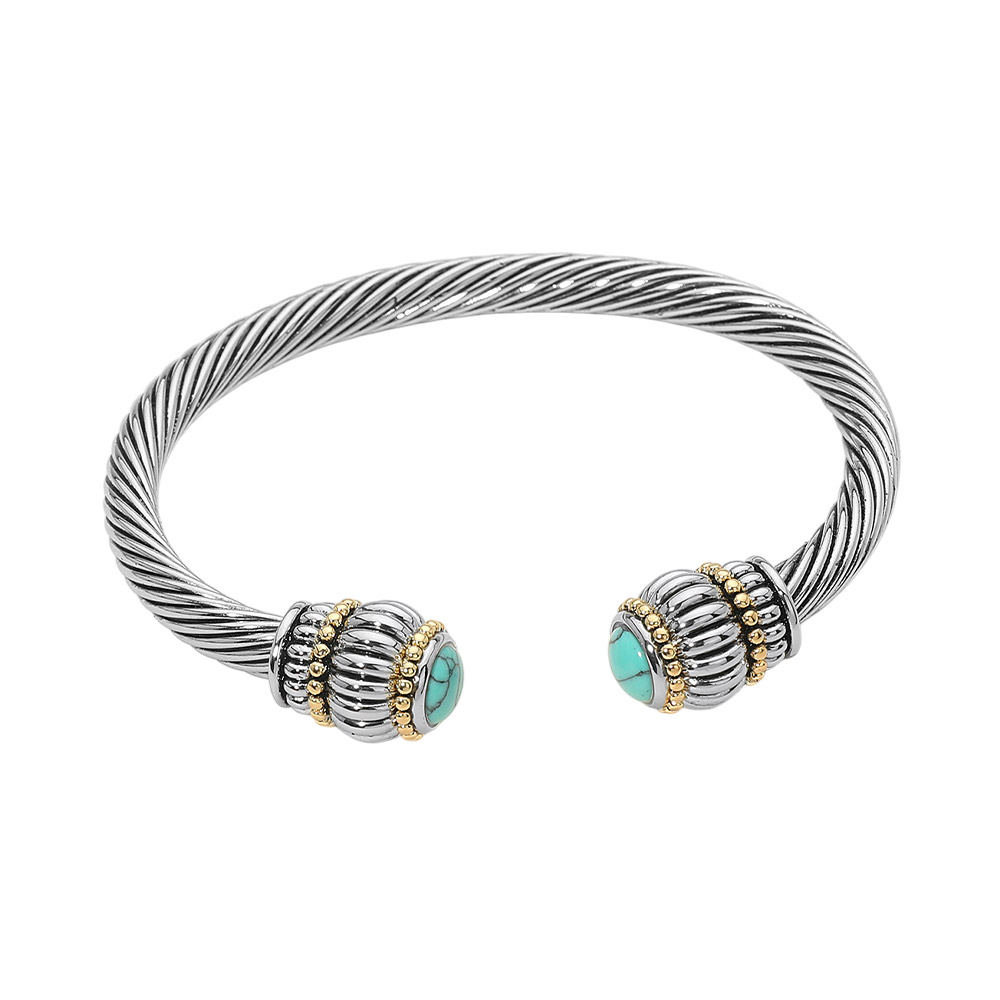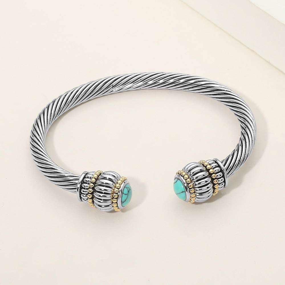 Boho Stone Tip Twisted Cable Cuff Bracelet