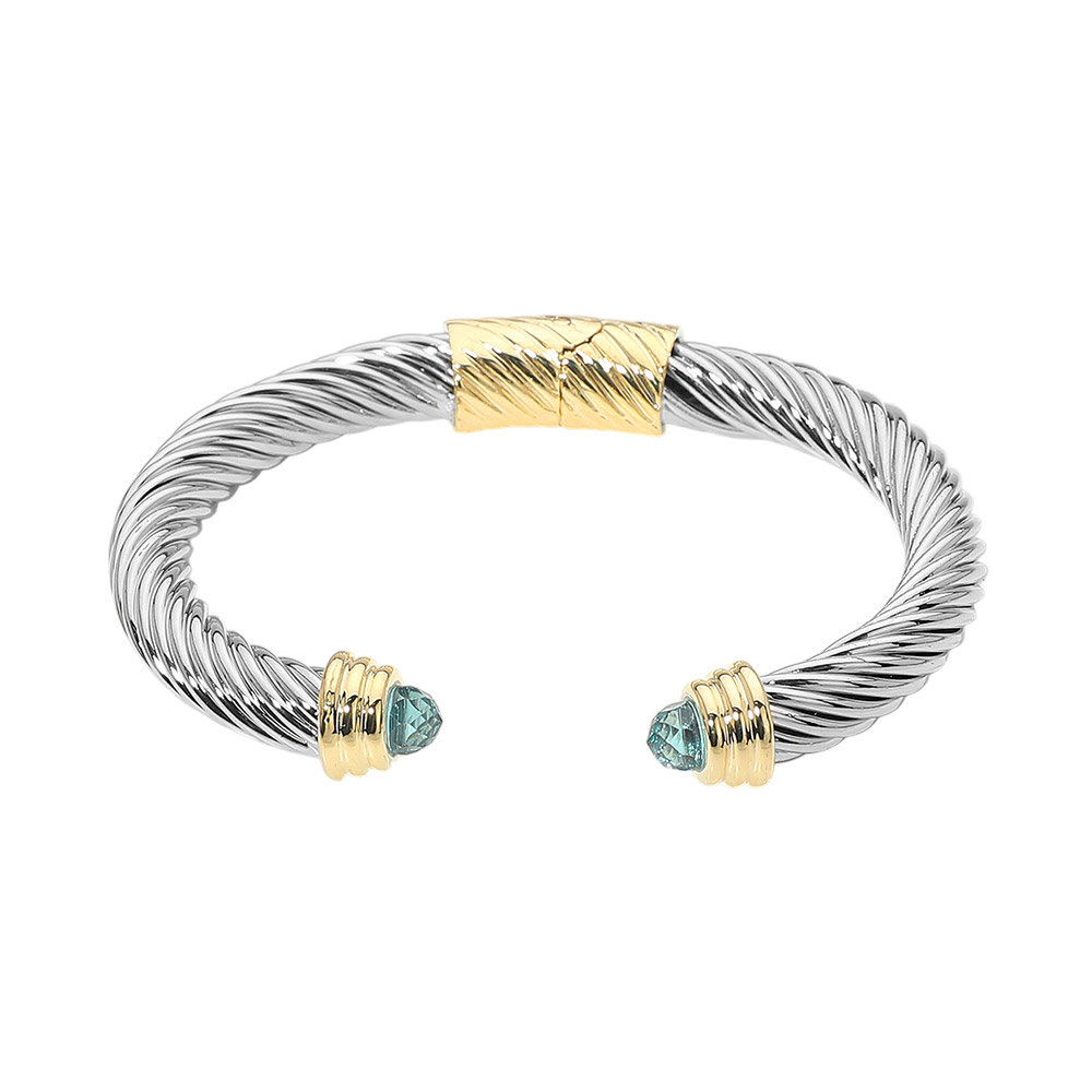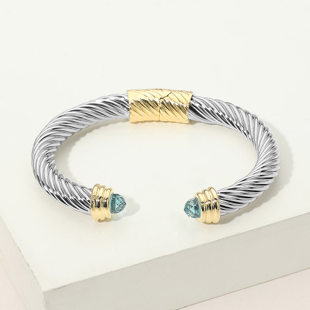 Faceted Stone Tip Twisted Cable Hinged Cuff Bracelet