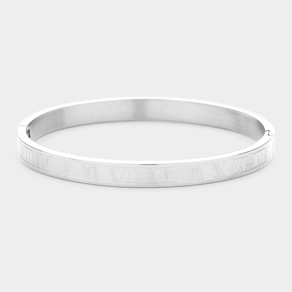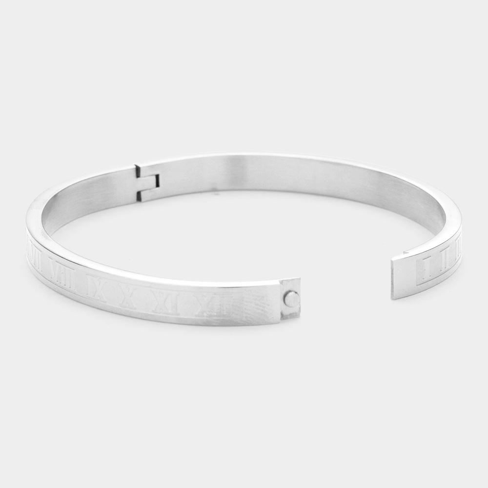 Stainless Steel Stone Paved Pointed Hinged Bangle Bracelet