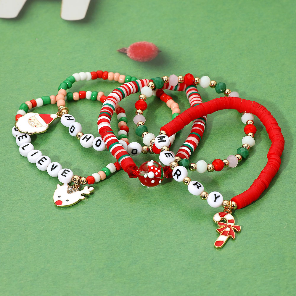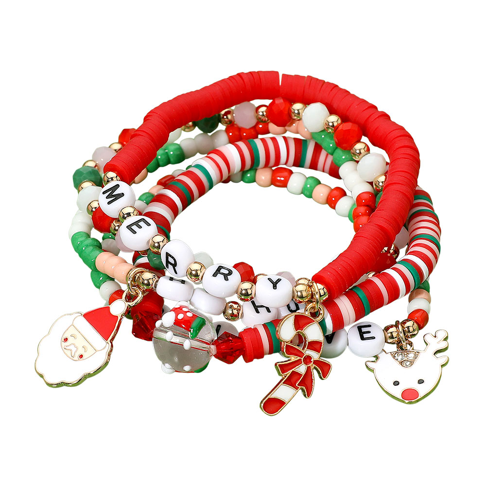 Details • Size : 1.25" H • Stretchable • Playful holiday coil bracelet set with colorful beads, festive charms including Santa, reindeer, candy cane, and Merry letters. A fun accessory to celebrate Christmas style and perfect for holiday gifting. • Lead and Nickel Compliant