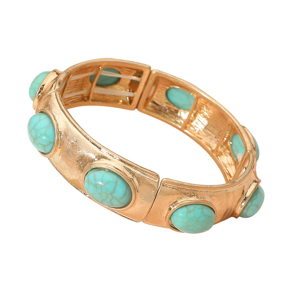 • This textured stretch bracelet is adorned with oval cabochon-style accents, giving it a bold and artistic appeal. Designed for comfort and easy wear, it’s a versatile piece that adds a touch of statement style to both casual and dressy outfits.