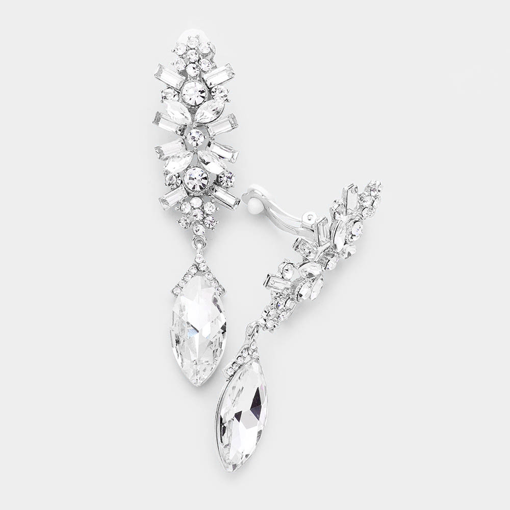 Crystal Marquise Rhinestone Pave Evening Clip On Earrings