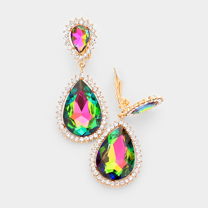Crystal Pave Trim Teardrop clip on Earrings