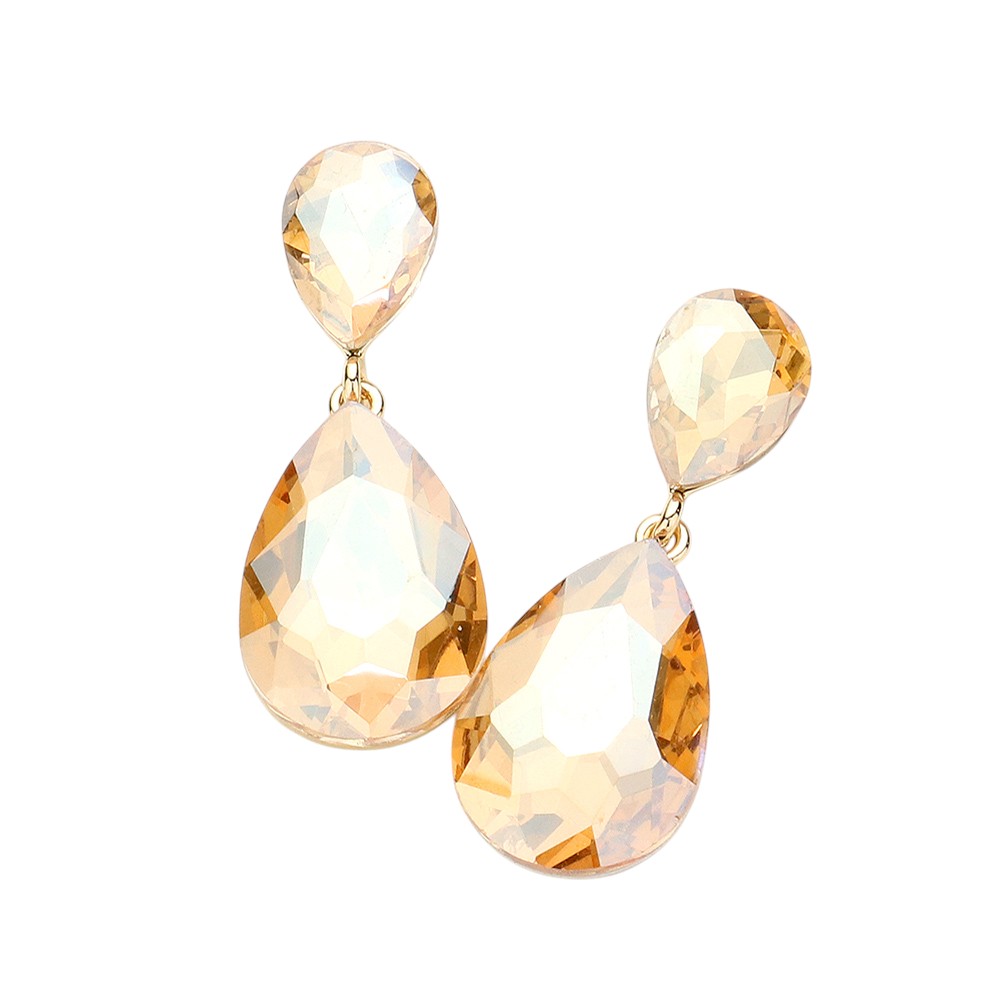 • Glamorous faceted teardrop dangle earrings featuring a radiant crystal-cut design that catches the light beautifully. Lightweight and sophisticated, these statement earrings elevate evening outfits, weddings, or special occasions with timeless elegance and refined sparkle.