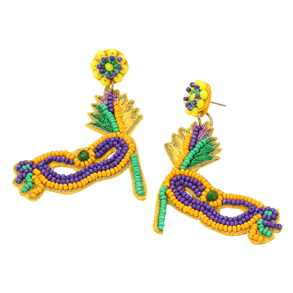 Mardi Gras Felt Back Seed Beaded Party Mask Dangle Earrings