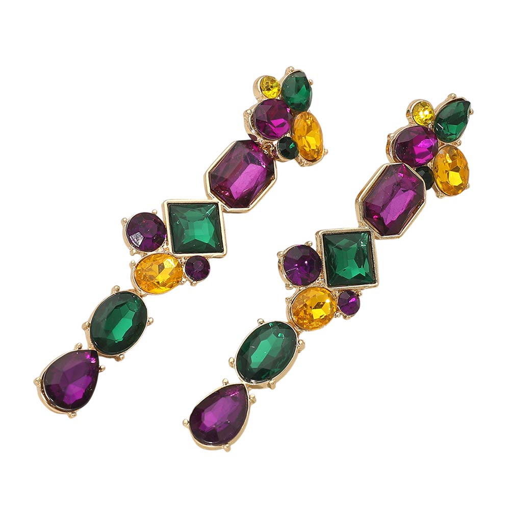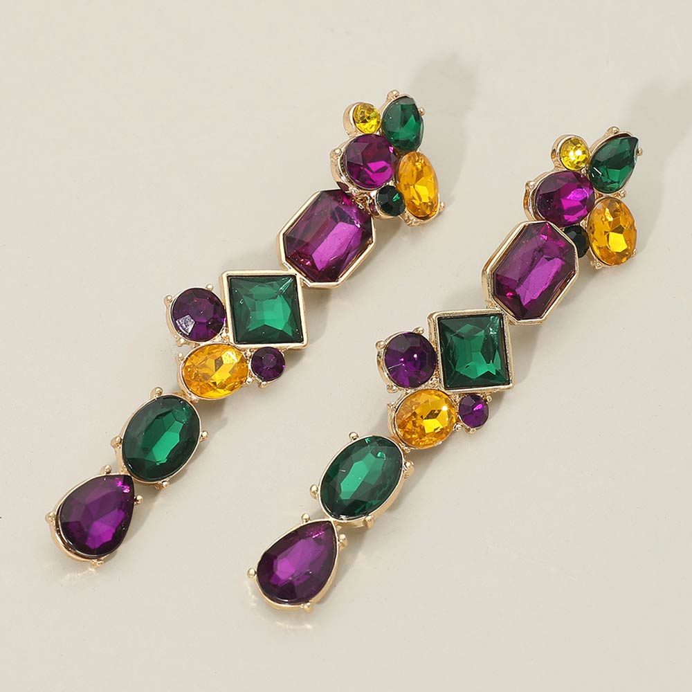 Details • Size : 0.8" X 3.6" • Post Back • These geometric multi stone drop statement earrings feature an elegant vertical design with mixed shapes that create eye-catching movement and bold visual interest. Perfect for boutiques seeking standout accessories for parties, special occasions, or elevated everyday looks, they offer strong trend appeal and versatile styling potential. • Lead and Nickel Compliant