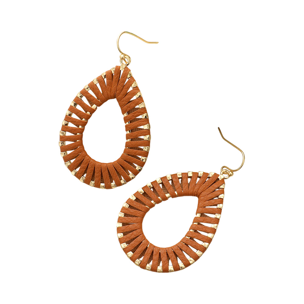 Faux Leather Wrapped Teardrop Dangle Earrings