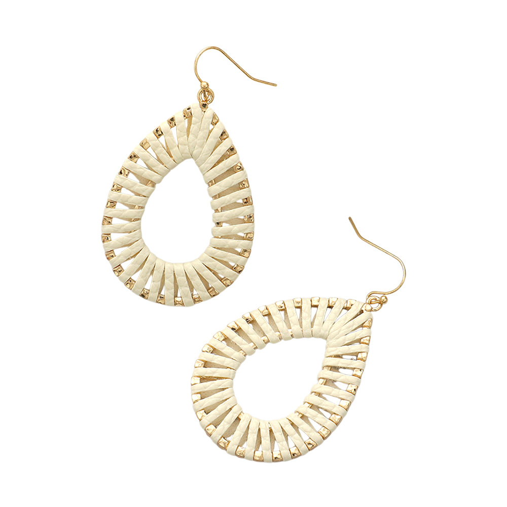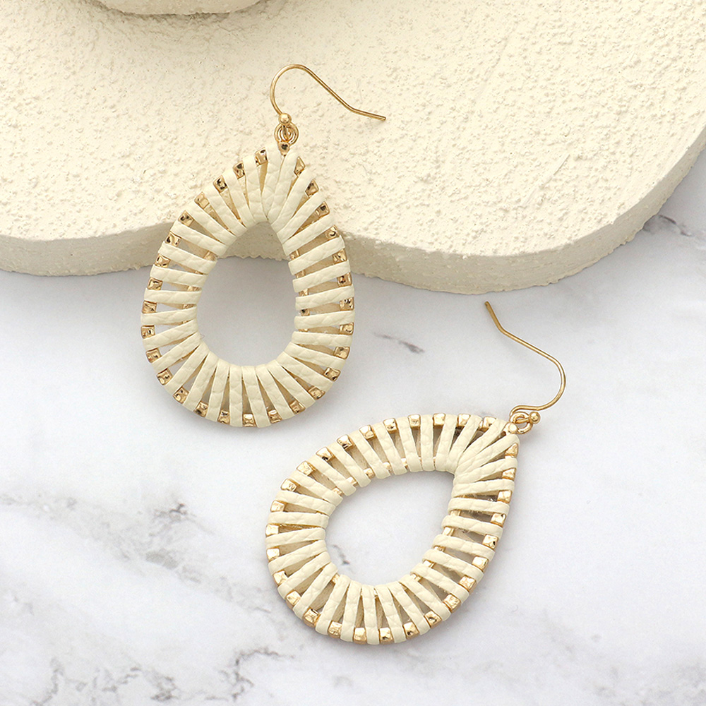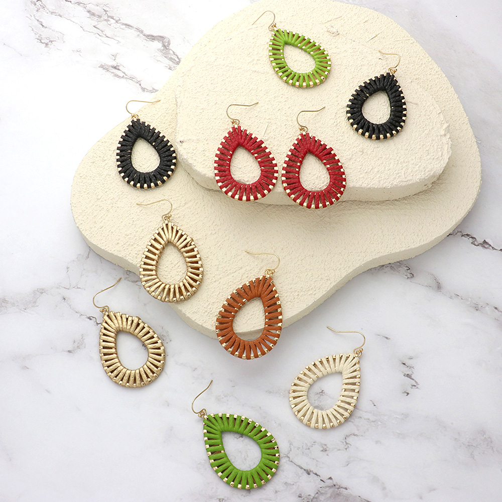 Raffia Wrapped Teardrop Dangle Earrings