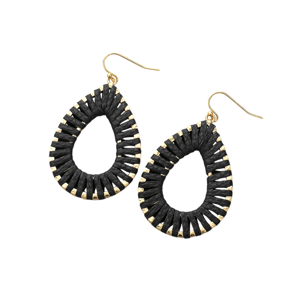 Faux Leather Wrapped Teardrop Dangle Earrings