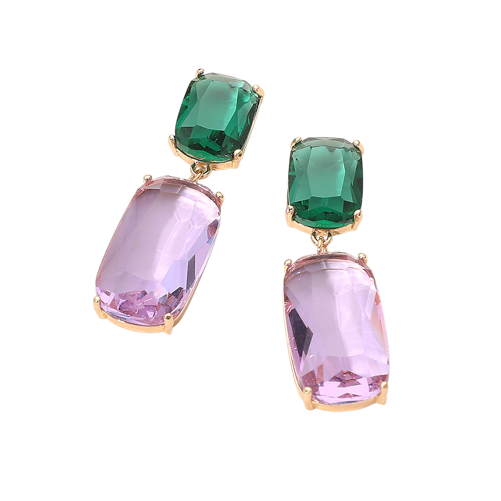 Details • Size : 0.5" X 1.8" • Post Back • Add a refined touch of glamour with these Dual Gemstone Drop Earrings. Featuring two radiant stones in complementary tones, this elegant design offers timeless sophistication and modern charm—perfect for evening wear, celebrations, or elevating your everyday style. • Brass • Lead and Nickel Compliant