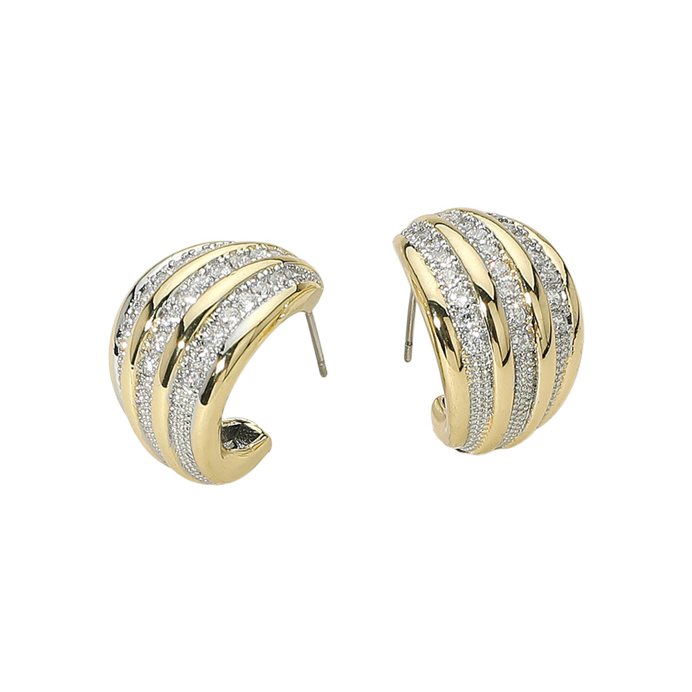 • Elevate your look with these striped dome earrings, featuring bold polished bands accented by rows of pavĂ© crystals. Their sculpted dome silhouette brings modern elegance, making them perfect for both everyday wear and sophisticated occasions.