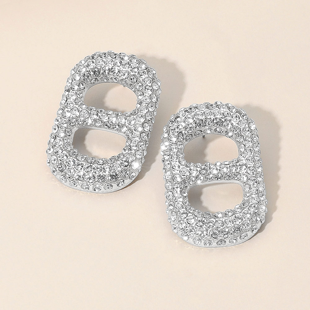 Details • Size : 1" X 1.6" • Post Back • Make a bold style statement with these oval rhinestone earrings encrusted in shimmering stones. Perfect for evening wear, parties, and glamorous occasions, these dazzling earrings elevate any outfit with instant sparkle and chic elegance. • Lead and Nickel Compliant