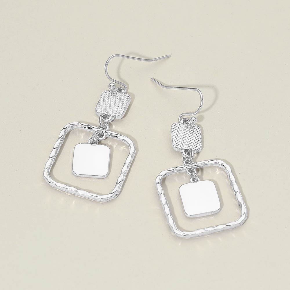 Geometric Metal Layered Square Drop Earrings