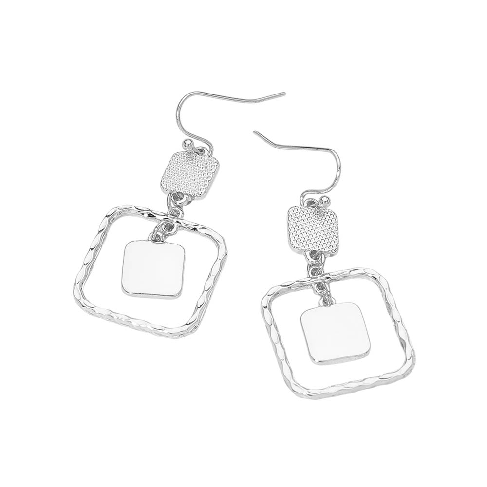 • Elevate everyday style with these geometric square layered drop hook earrings. Featuring a modern open frame design with suspended inner accents, they create elegant movement and visual depth. Lightweight and versatile, they pair effortlessly with casual outfits, workwear, or evening looks, making them a stylish addition to any jewelry collection.