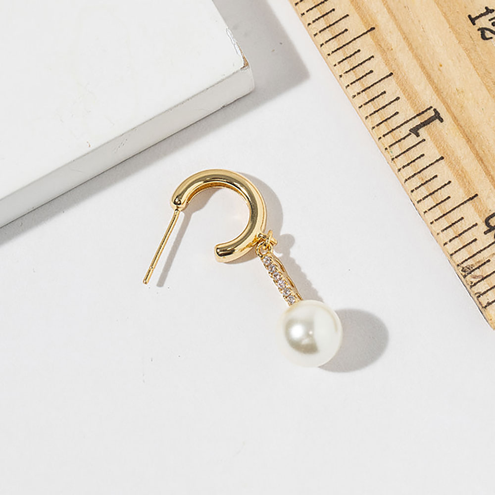 Details • Size : 0.5" X 1.3" • Elegant hoop earrings featuring a smooth curved silhouette paired with a single round drop and a delicate CZ-accent connector. Designed to add gentle movement and refined charm, this versatile style transitions effortlessly from everyday outfits to dressy occasions and layered accessory looks. • CZ Cubic Zirconia • Gold Filled • Lead and Nickel Compliant • Made In Korea • Sterling Silver Post