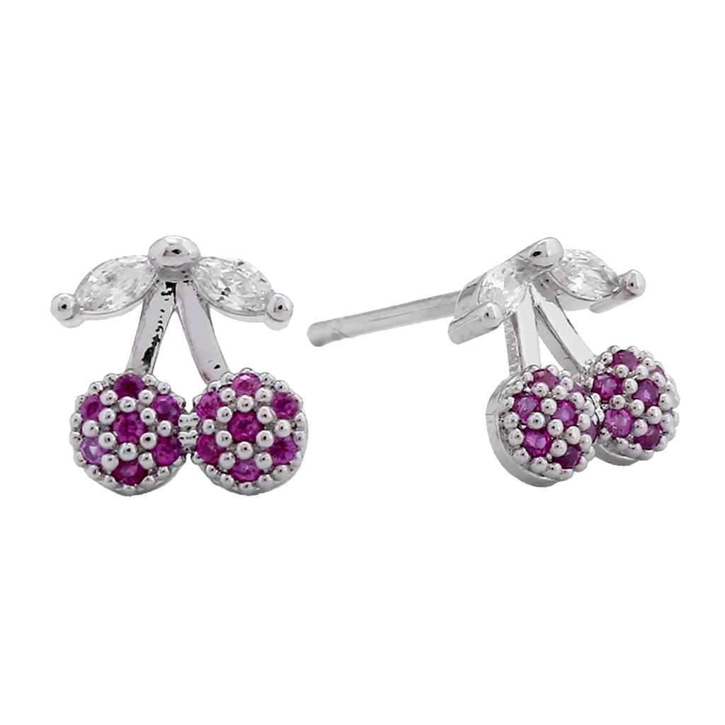 14K White Gold Dipped CZ Stone Pointed Rosie Cherry Hypoallergenic Stud Earrings