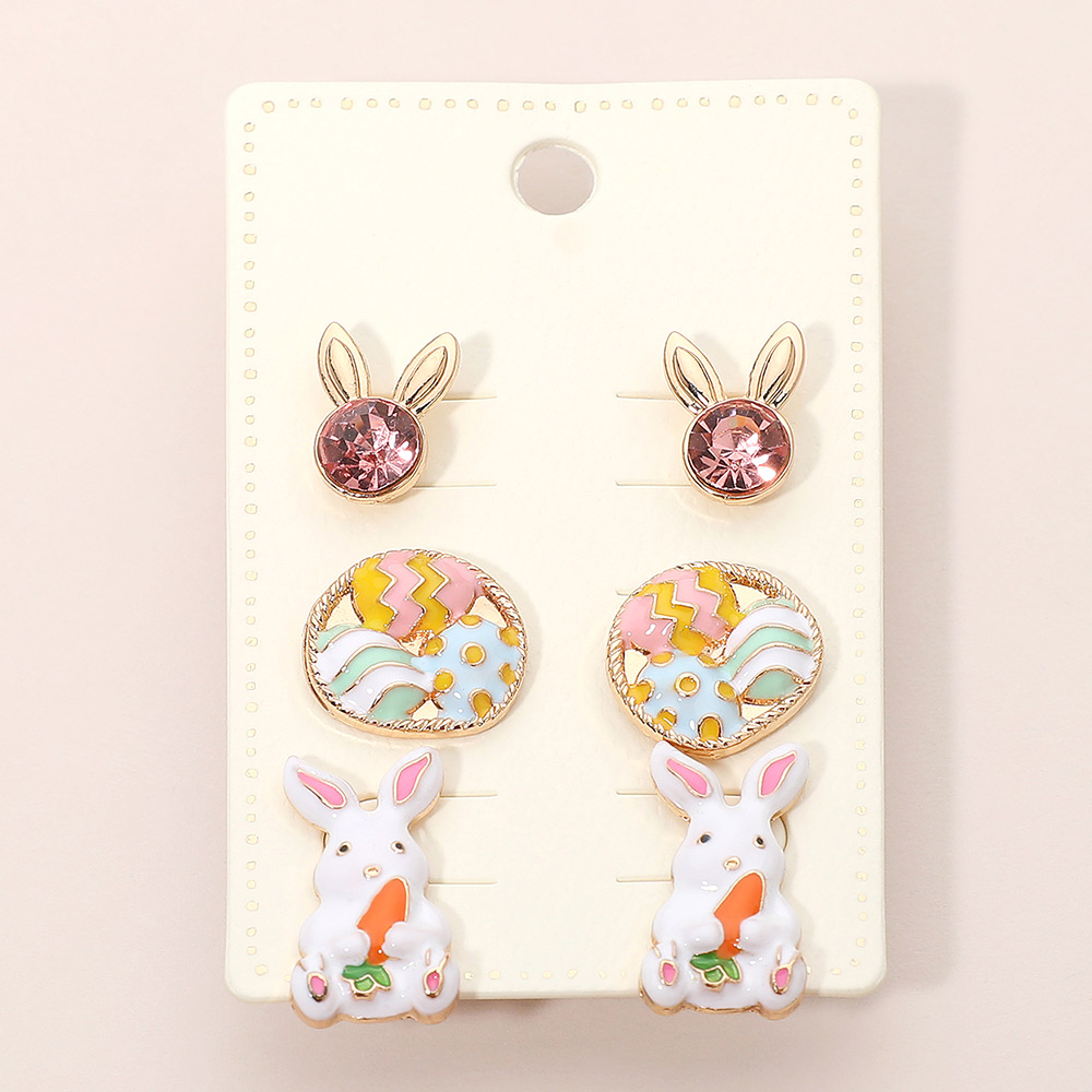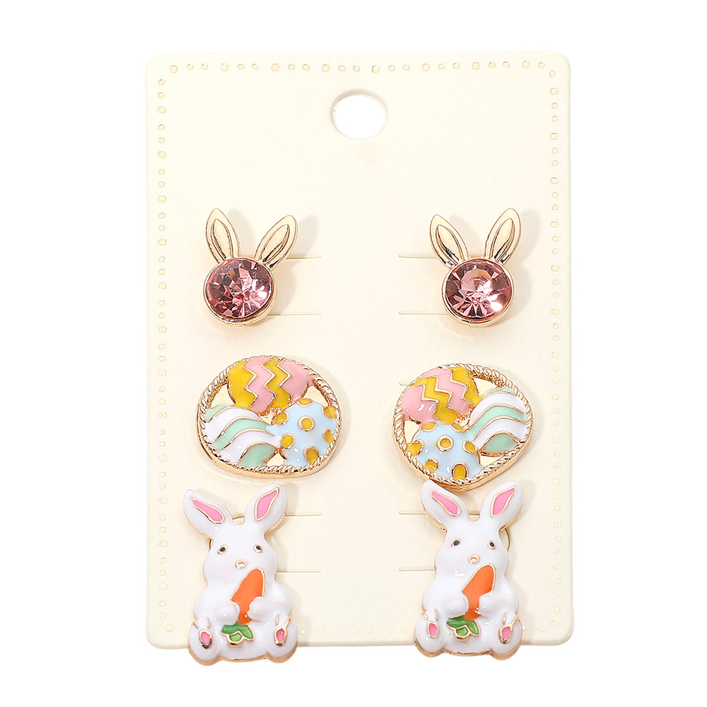 3Pairs - Enamel Easter Bunny Egg Stud Earring Set 3Pairs - Enamel Easter Bunny Egg Stud Earring Set