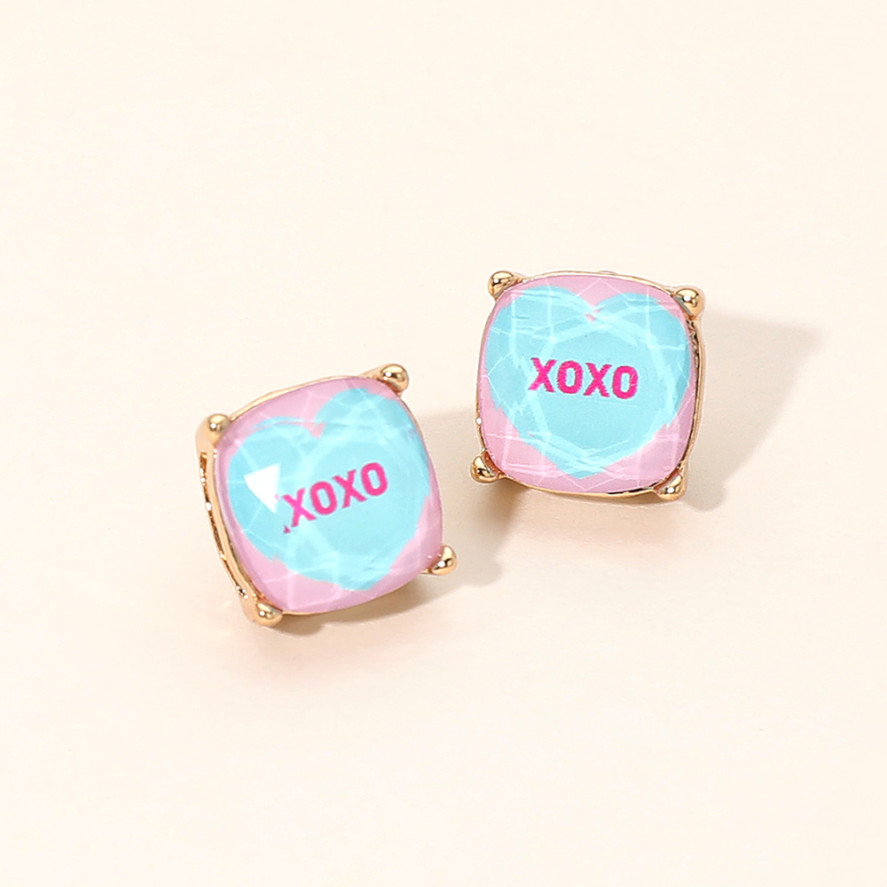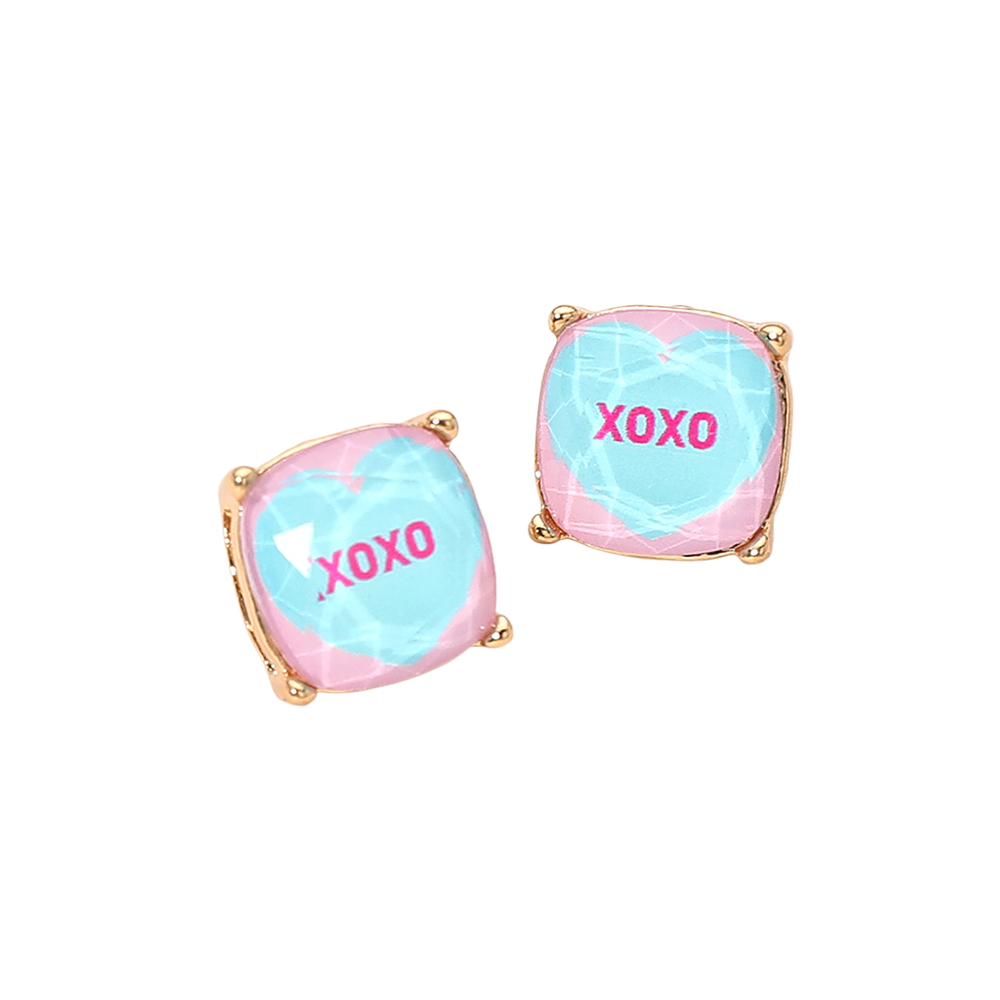 XOXO Message Heart Square Cushion Stud Earrings XOXO Message Heart Square Cushion Stud Earrings XOXO Message Heart Square Cushion Stud Earrings