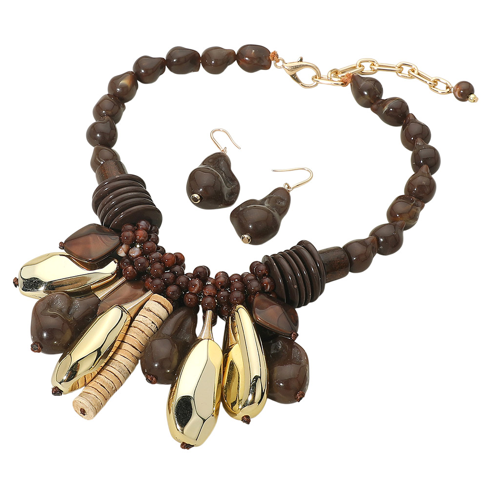 Details • Necklace Size : 17" + 3" L • Decor Size : 3.25" L • Earrings Size : 2.25" L • This statement charm necklace and matching earring set features layered beads and sculptural accents for a bold, fashion-forward look. Designed to elevate boutique collections, it offers strong visual impact, versatile styling options, and standout appeal for trend-driven outfits and modern statement jewelry displays. • Lead and Nickel Compliant