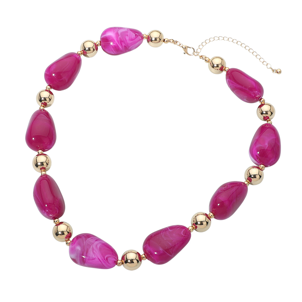 Details • Necklace Size : 18" + 3" L • Decor Size : 0.75" L • Eye-catching statement necklace designed with smooth rounded beads and polished accent spheres for balanced dimension. The structured yet fluid silhouette makes it easy to style with casual looks or elevated outfits, offering a refined focal point that enhances layering or stands out beautifully on its own. • Lead and Nickel Compliant