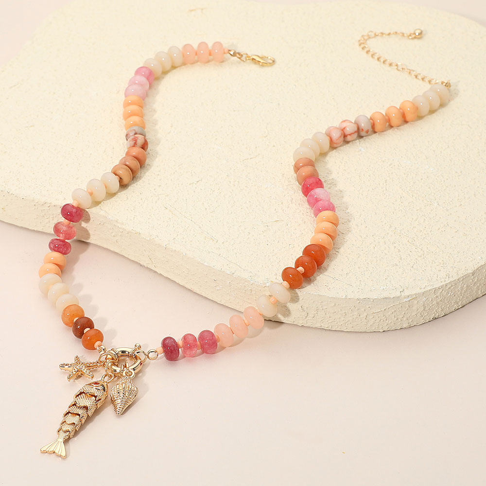 Fish Seashell Starfish Charm Pendant Resin Flat Disc Beaded Necklace