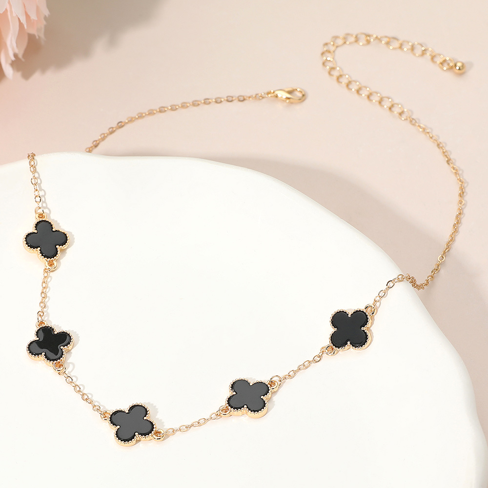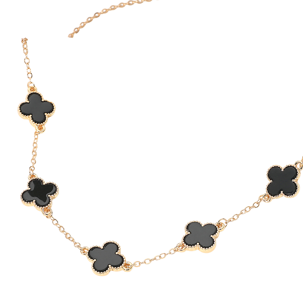 • This delicate four-leaf quatrefoil pendant necklace features five charming motifs linked by a fine adjustable chain. Designed to embody elegance and luck, it offers a timeless appeal that enhances both casual and formal looks, making it an essential piece for everyday sophistication.