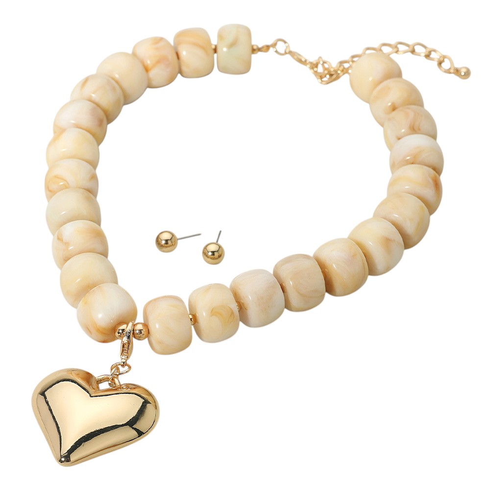 Puffy Metal Heart Pendant Chunky Beaded Statement Necklace Puffy Metal Heart Pendant Chunky Beaded Statement Necklace