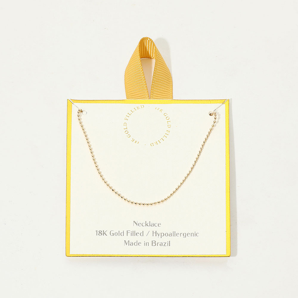 Details • Necklace Size : 16" + 2" L • Decor Size : 0.1" L • Delicate beaded chain necklace with a minimalist design, perfect for everyday wear or layering. Adds a subtle yet elegant touch to any outfit, making it a versatile jewelry essential. • Gold Filled • Hypoallergenic • Lead and Nickel Compliant • Made In Brazil