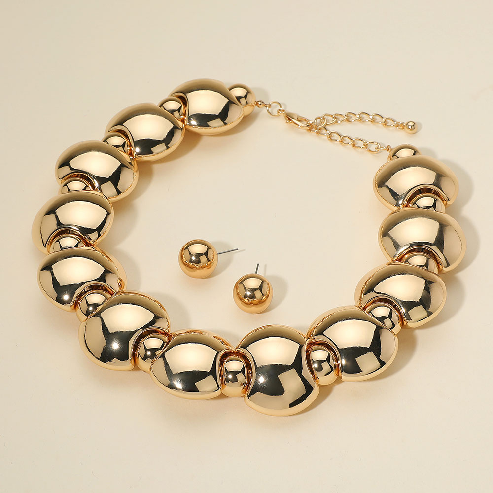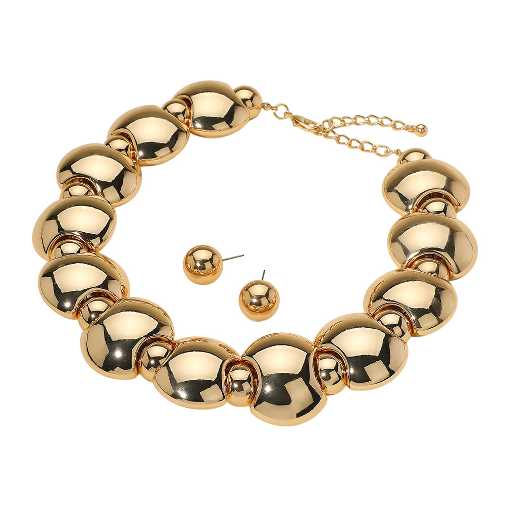 Details • Necklace Size : 17" + 3" L • Decor Size : 1.5" L • Earrings Size : 0.6" L • Elevate your look with this chunky bead necklace and matching stud earrings set. Featuring bold polished beads for a modern statement, this versatile jewelry set pairs effortlessly with casual and evening wear. A must-have for standout yet timeless elegance. • Lead and Nickel Compliant