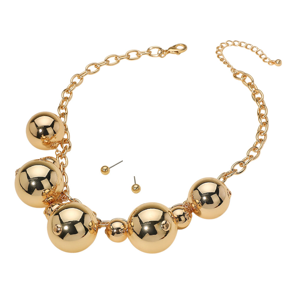 Details • Necklace Size : 18" + 3" L • Decor Size : 1.75" L • Earrings Size : 0.25" L • Make a bold statement with this oversized bead necklace and matching stud earrings set. Featuring chunky polished beads on a sleek chain, this jewelry set adds modern glamour to party outfits, casual looks, and elegant evening styles. Perfect for standout fashion. • Lead and Nickel Compliant