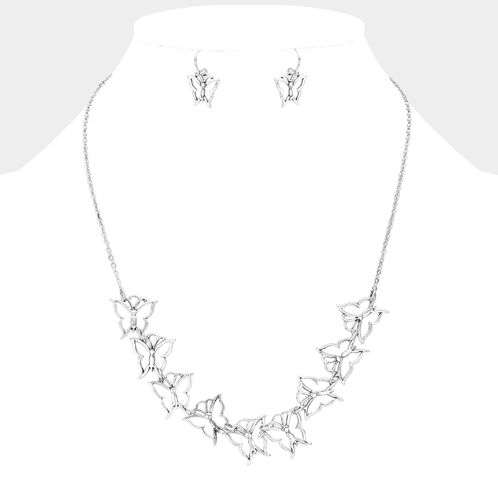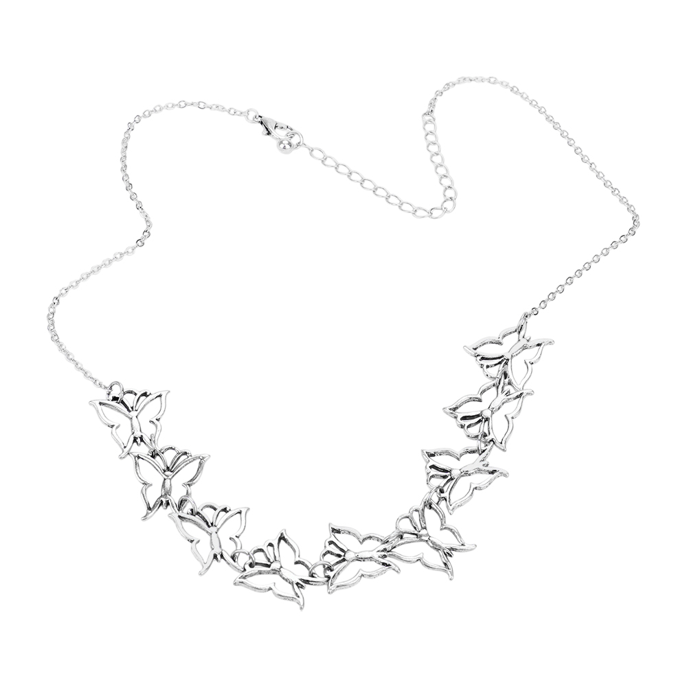 Rhinestone Paved Butterfly Flower Charm Station Statement Necklace