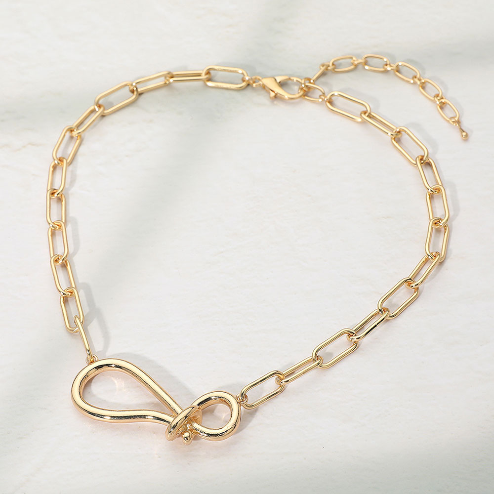 Details • Necklace Size : 16" + 3" L • Decor Size : 0.8" L • Elevate your style with this chain link necklace featuring a modern loop pendant for a bold yet minimal look. Adjustable for the perfect fit, this versatile accessory pairs effortlessly with casual or dressy outfits, making it a must-have statement piece for layering or solo wear. • Lead and Nickel Compliant