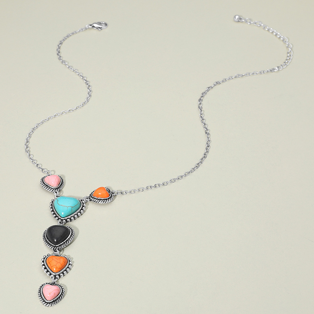 Details • Necklace Size : 18" + 3.5" L • Pendant Size : 1.75" X 4" • Elevate your outfit with this vintage-inspired heart pendant necklace featuring a tiered drop design. Perfect for adding bold charm and personality to your style. • Lead and Nickel Compliant