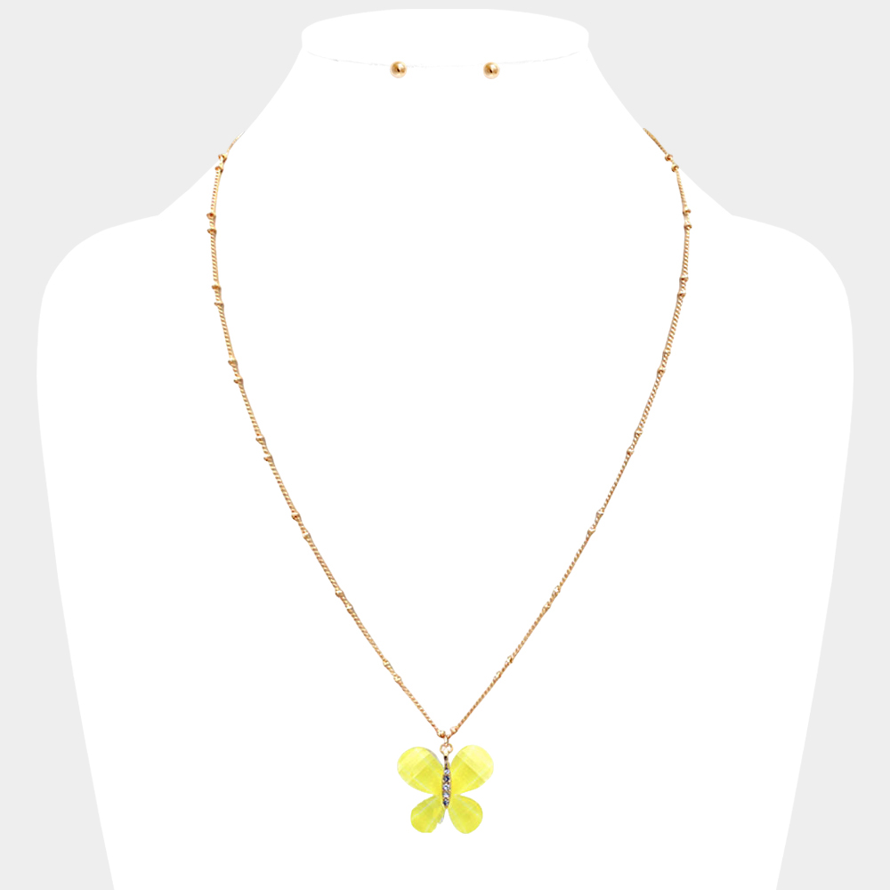 Butterfly Glass Stone Cluster Pointed Teardrop Stone Cluster Evening Necklace