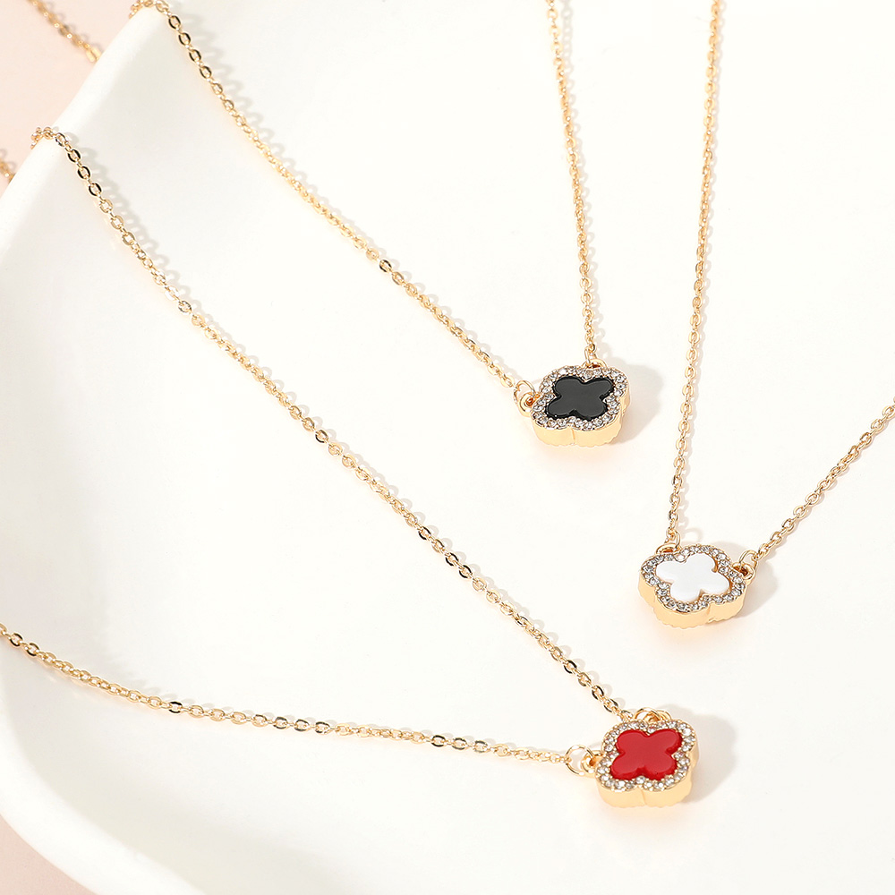 • This dainty quatrefoil charm pendant necklace showcases a single elegant motif framed by a shimmering border for a refined touch. Its minimalist design and adjustable chain make it perfect for layering or wearing solo, adding a hint of sophistication to both casual and dressy ensembles.