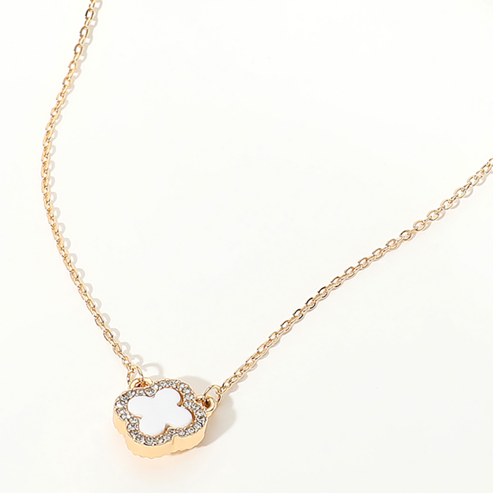 Details • Necklace Size : 16" + 3" L • Pendant Size : 0.5" X 0.5" • This dainty quatrefoil charm pendant necklace showcases a single elegant motif framed by a shimmering border for a refined touch. Its minimalist design and adjustable chain make it perfect for layering or wearing solo, adding a hint of sophistication to both casual and dressy ensembles. • Gold Dipped • Lead and Nickel Compliant