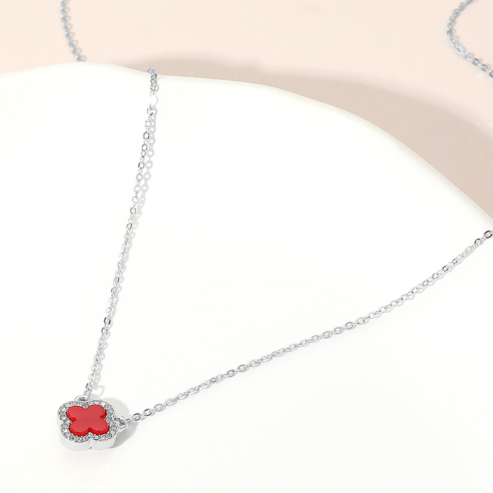 • This dainty quatrefoil charm pendant necklace showcases a single elegant motif framed by a shimmering border for a refined touch. Its minimalist design and adjustable chain make it perfect for layering or wearing solo, adding a hint of sophistication to both casual and dressy ensembles.
